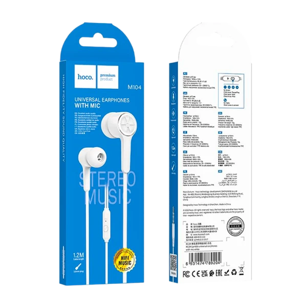 Наушники HOCO M104 - это стильная и удобная гарнитура, которая подойдет как для прослушивания музыки, так и для общения по телефону. Они оснащены 3,5-миллиметровым разъемом, что позволяет подключать их к большинству современных устройств, таких как смартфоны, планшеты, ПК, ноутбуки и т.д. HOCO M104 Jack 3.5mm обладают отличным качеством звука. Внутриканальные HOCO M104 оснащены 10-миллиметровыми динамиками, которые обеспечивают чистый и насыщенный звук. Это позволяет получить максимальное удовольствие от прослушивания музыки и общения по телефону.