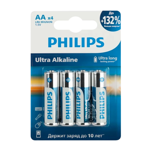 Алкалиновые батарейки Philips ULTRA LR6 предназначены для современных портативных электронных устройств с повышенным энергопотреблением.