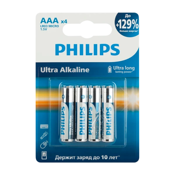 Алкалиновые батарейки Philips ULTRA LR03 предназначены для современных портативных электронных устройств с повышенным энергопотреблением.