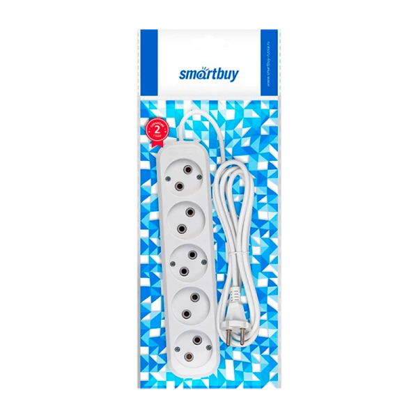 Удлинитель Smartbuy 5р.Б/З 10A 2.0м ПВС 2x1мм² белый