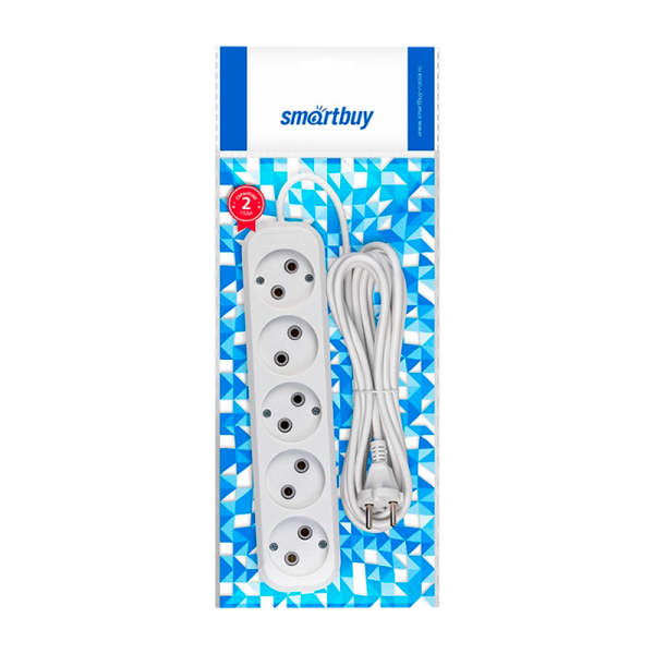 Удлинитель Smartbuy 5р.Б/З 10A 5.0м ПВС 2x1мм² белый