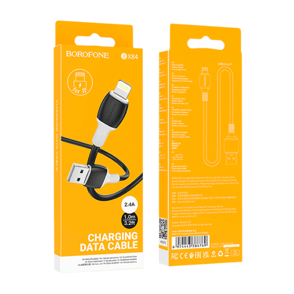 Кабель Borofone BX84 USB (m)-Lightning (m) 1м 2.4A ПВХ черный (1/360)