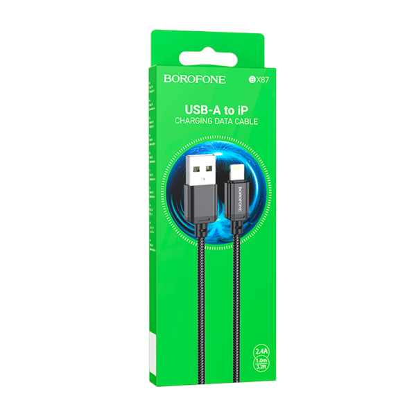 Кабель Borofone BX87 USB (m)-Lightning (m) 1м 2.4A нейлон черный (1/1000)