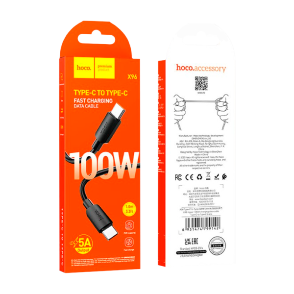 Кабель HOCO X96 Type-C (m)-Type-C (m) 1м 3.0A 100W ПВХ черный.
