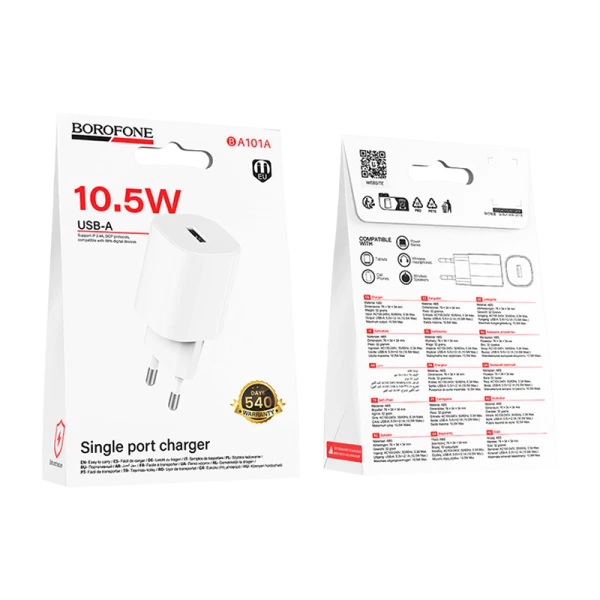 Сетевое З/У Borofone BA101A 1USB 2.1A 10.5W белый (1/20/120)