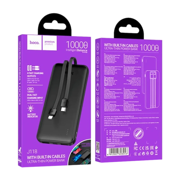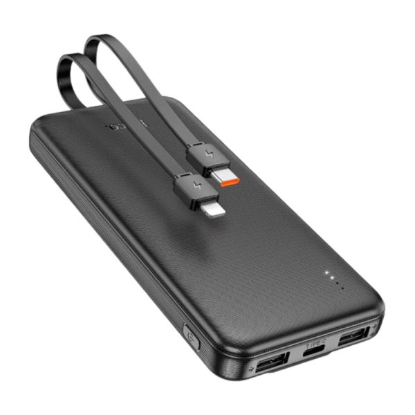 Внешний аккумулятор HOCO J118 10000mAh 2.0A 3USB индикация с кабелем Lightning/Type-C черный (1/52)