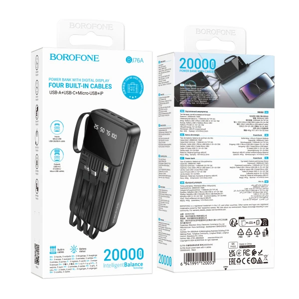 Внешний аккумулятор Borofone BJ76A 20000mAh 2.0A 2USB/Type-C/MicroUSB черный (1/39)