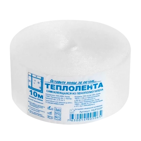 Утеплитель «Теплолента», изделие для заклеивания щелей в оконных рамах. Утеплитель имеет уникальные свойства тепло- и звукоизоляции. Изготовлен из вспененного пенополиэтилена. Применяется на очищенной и обезжиренной поверхности. Лента хорошо отклеивается и не повреждает краску оконной рамы. Длина изделия 10 метров.