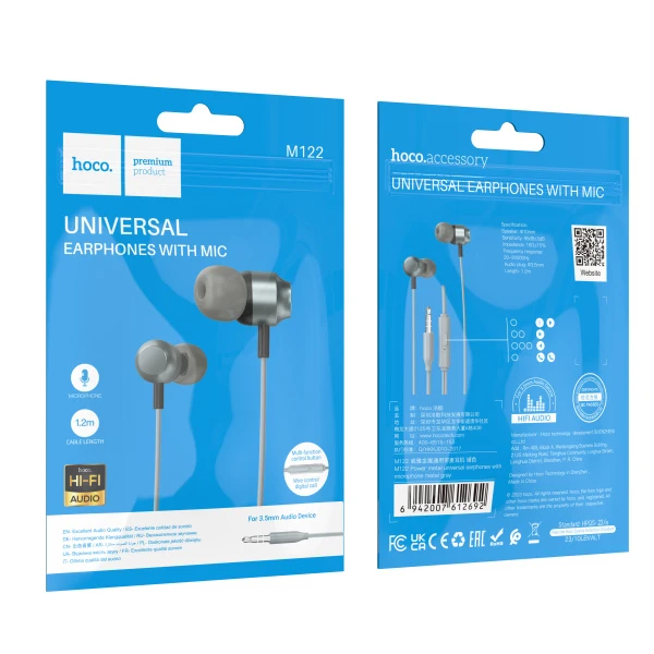 Наушники внутриканальные HOCO M122 с микр. серый