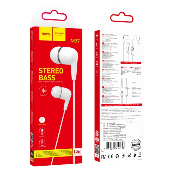 Наушники внутриканальные HOCO M97 с микр. Type-C белый (1/420)