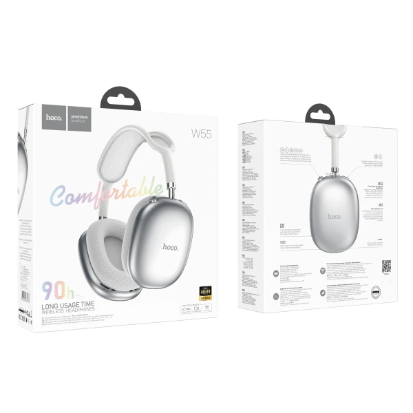 Наушники полноразмерные HOCO W55 bluetooth 5.4 с микр. серебряный (1/40)