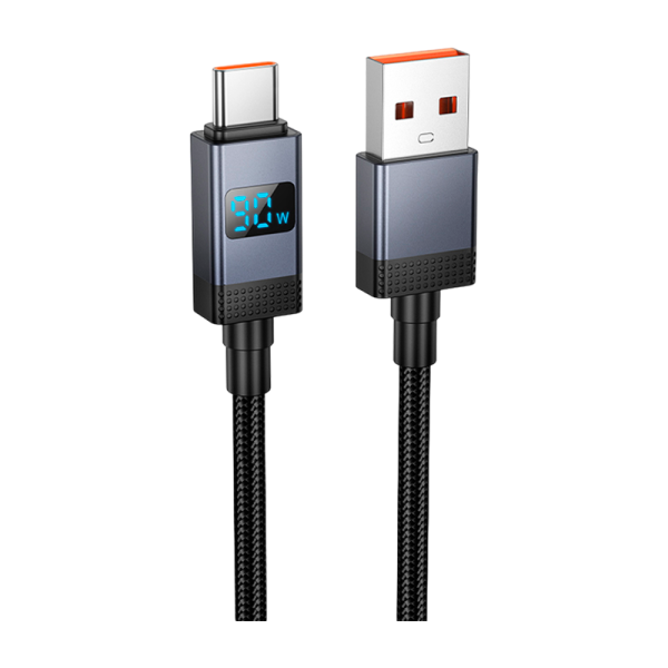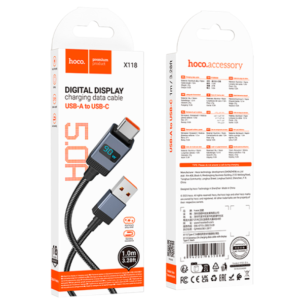 Кабель HOCO X118 USB (m)-Type-C (m) 1м 5.0A нейлон дисплей черный.