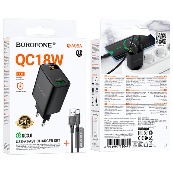 Сетевое зарядное устройство Borofone BA95A в черном цвете заряжает технику через порт USB. Выходная мощность 18 Вт и выходной ток на порт 3А обеспечивают быструю зарядку устройств с поддержкой протокола Quick Charge 3.0. Сетевое зарядное устройство Borofone BA95A защищено от короткого замыкания, перегрузки и перегрева.