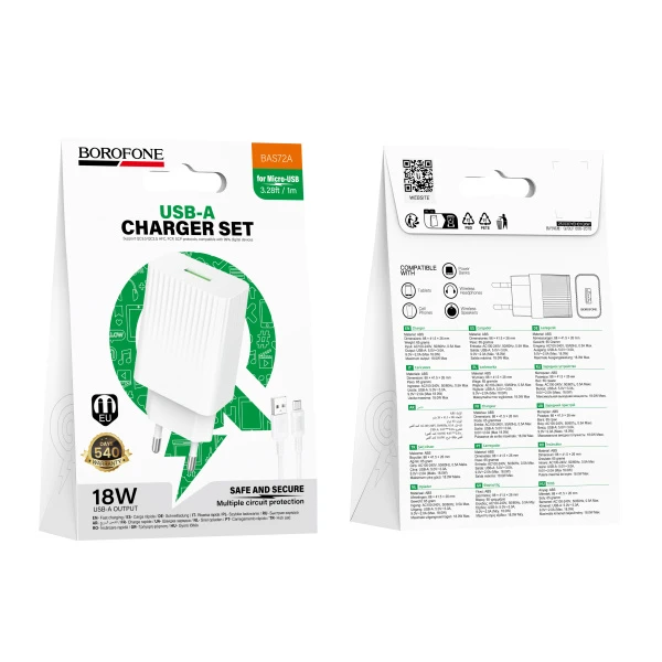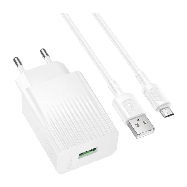 Сетевое З/У Borofone BAS72A 1USB 18W с кабелем microUSB белый (1/20/120)