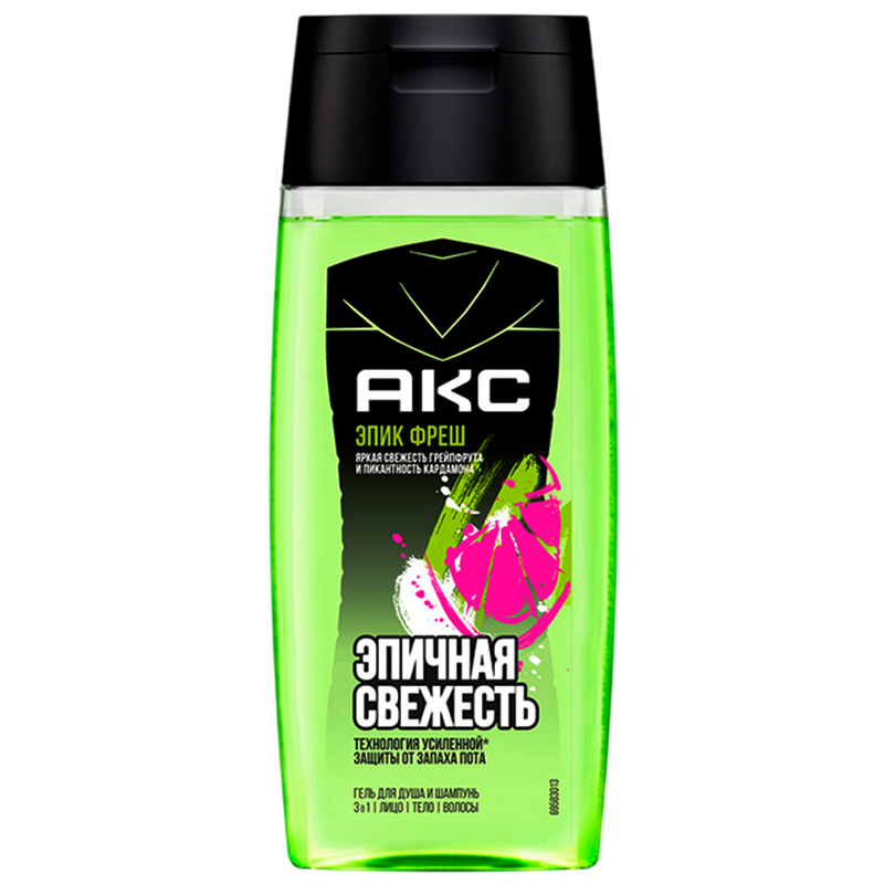 Мужской гель для душа АКС Эпичная Свежесть – это средство, которое сочетает в себе гелевые формулы для душа, шампуня и умывания. Разработанное для мужчин, которые ценят эффективность и простоту, Axe 3в1 Epic Fresh станет незаменимым спутником в любом путешествии или занятии спортом. Компактный объем 100 мл позволяет без труда брать его с собой, где бы вы ни находились. В состав входят пребиотики растительного происхождения и увлажняющие ингредиенты.
