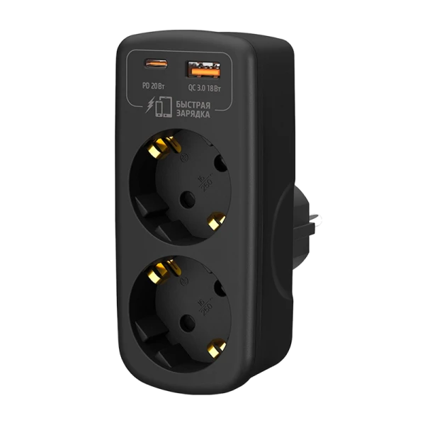Разветвитель Фотон AM 16-2E-USB/A1C1-QC 2р.С/З 16A PD,QC черный (1/6/72)