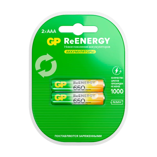 Аккумулятор бытовой GP HR03 AAA BL2 NI-MH 650mAh в пластиковой упаковке клемшел (2/20/200)