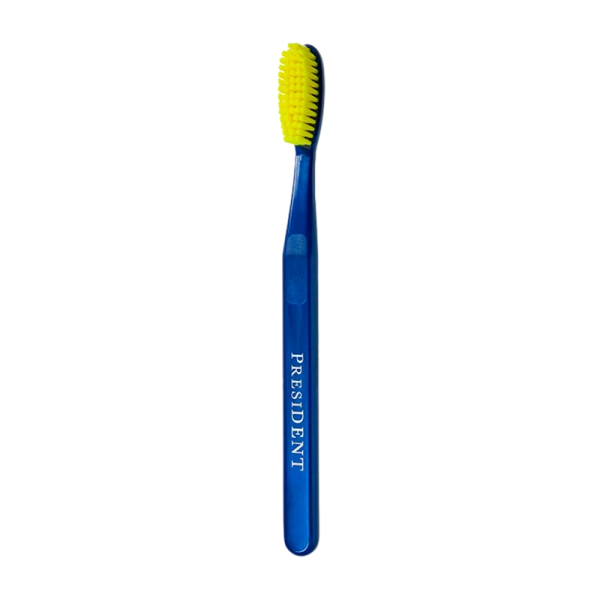 Мягкая зубная щетка President Sensitive (5 МИЛ) рекомендована при гиперчувствительности зубов, повышенной истираемости эмали. Большая головка обеспечивает быстрое очищение внешних, внутренних и жевательных участков зубного ряда. Оптимально закругленные кончики щетины проходят трехуровневую обработку, деликатно полируют зубную эмаль и не травмируют десны. Удобная эргономичная ручка позволяет соблюдать правильную технику чистки зубов. МИЛ - показатель соотношения диаметра щетины и жесткости зубной щетки. Чем больше диаметр щетины, тем больше жесткость зубной щетки.