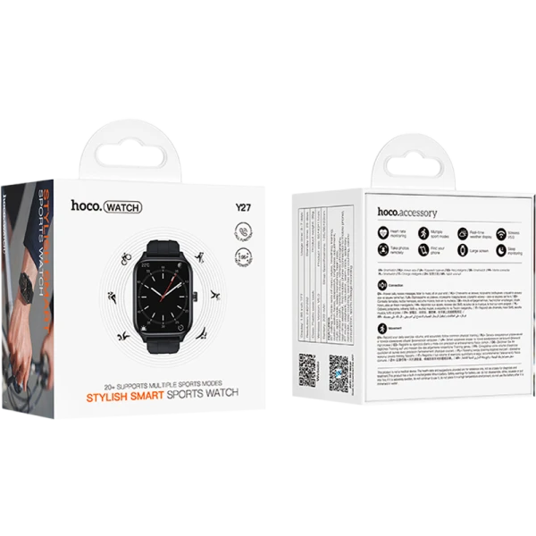 Смарт-часы Hoco Y27 черного цвета, с увеличенной автономностью для контроля ежедневной активности. Модель с базовой защитой от влаги и стабильным беспроводным подключением. Поддержка таких функций, как: передача информации, прогноз погоды в реальном времени и несколько спортивных режимов.