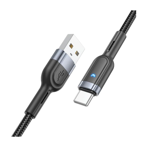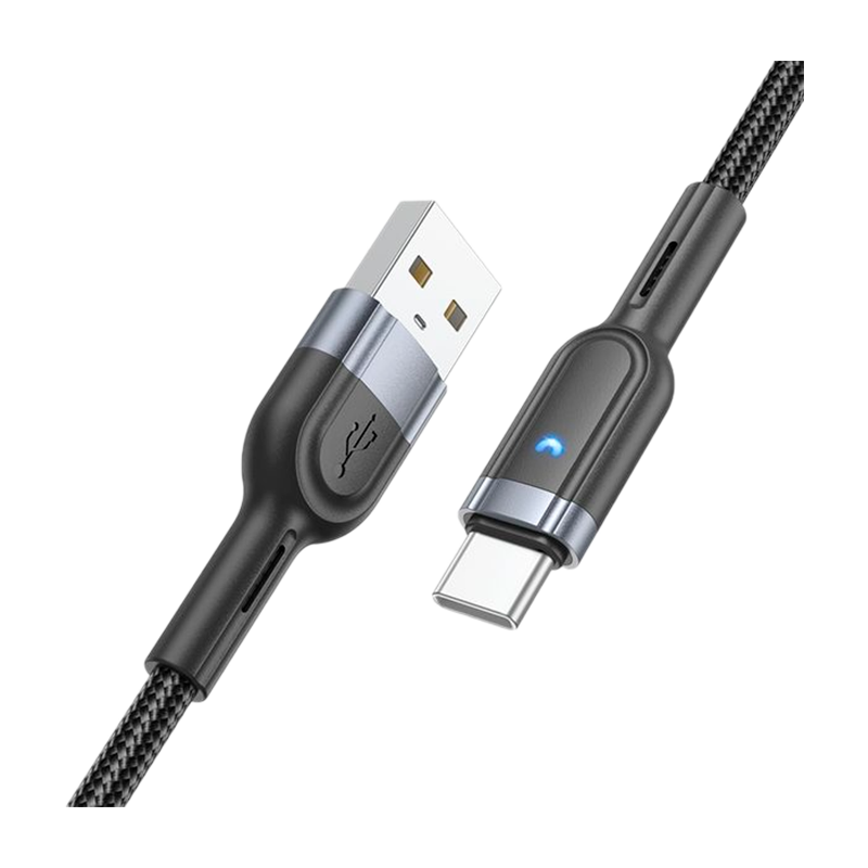 Кабель HOCO U117 USB (m)-Type-C (m) 1.2м 3.0A нейлон с отключением питания, черный цвет.