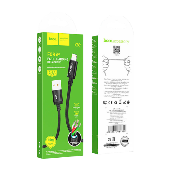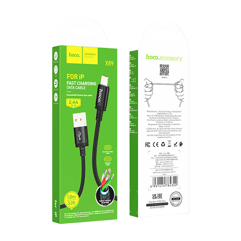 Кабель HOCO X89 USB (m)-Lightning (m) 1м 2.4A нейлон черный.