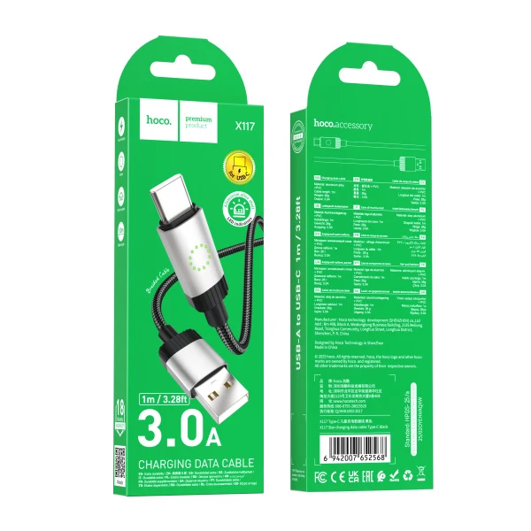 Кабель HOCO X117 USB (m)-Type-C (m) 1м 3.0A нейлон черный (1/31/310)