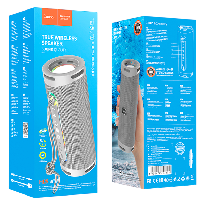 Беспроводная портативная колонка HOCO HC9 позволит слушать музыку в хорошем качестве дома и на улице. Колонку удобно брать с собой на природу, ведь благодаря защите от влаги степени IPX4 ей не страшны брызги и капли дождя. Два динамика общей мощностью 10Ватт обеспечат громкий и чистый звук в широком диапазоне частот. Поддерживает функцию TWS: две колонки можно объединить в одну стереосистему. Колонка подключается к источнику звука с помощью беспроводного соединения по протоколу Bluetooth 5.0 или по проводному соединению через разъем AUX. Поддерживает воспроизведение с карт памяти micro SD и флеш-накопителей.