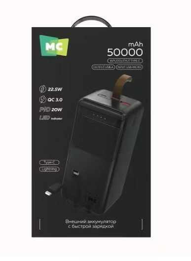 Внешний аккумулятор MORE CHOICE PB59-50 50000mAh 3.0A 22.5W 1USB/Type-C/MicroUSB черный (1/5/20)