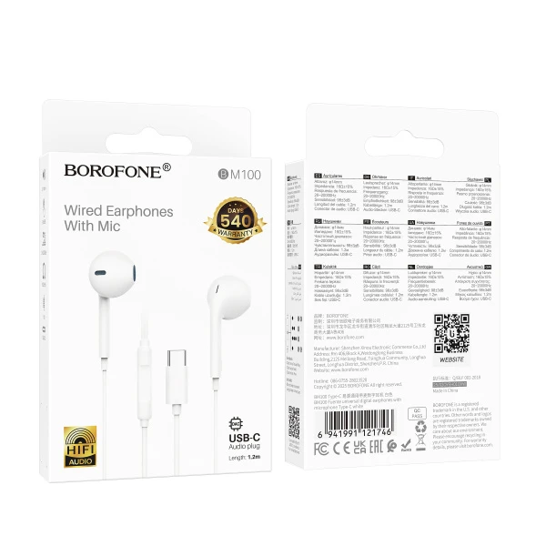 Наушники вставные Borofone BM100 с микр. белый (1/244)