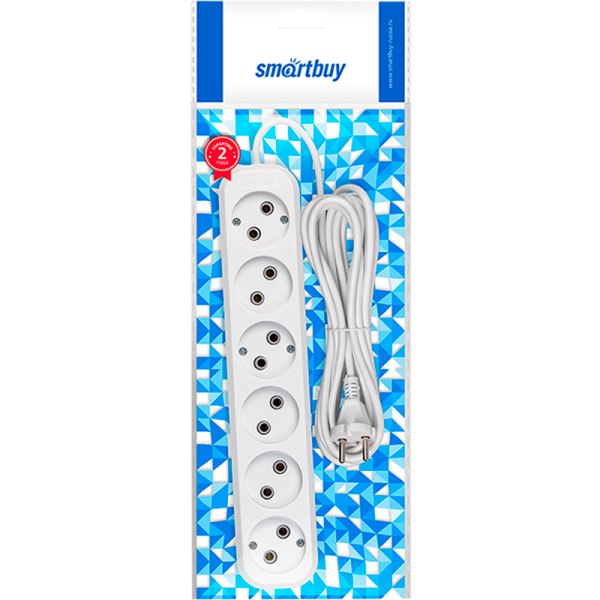 Удлинитель Smartbuy 6р.Б/З 10A 5.0м ПВС 2x1мм² белый