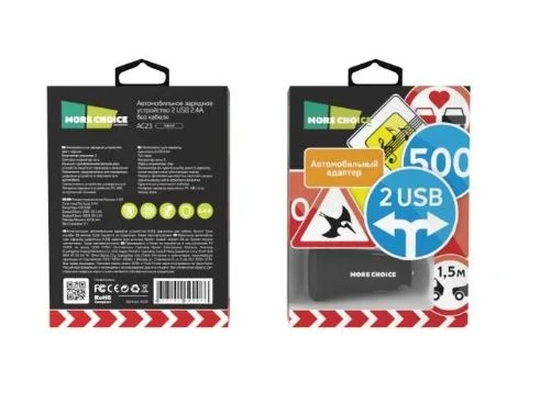 Автомобильное З/У MORE CHOICE AC23 2USB 2.4A черный (1/20/200)