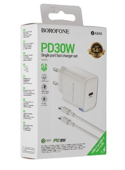 Сетевое З/У Borofone BA84A Type-C 30W PD,QC с кабелем Type-C белый