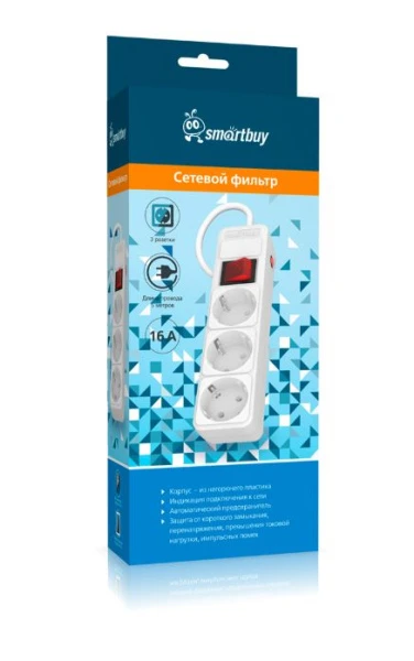 Сетевой фильтр Smartbuy SBSP-3-50-W 3р.С/З 16A 5м белый