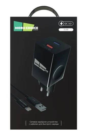 Сетевое З/У MORE CHOICE NC69i 2USB 3.0A QC3.0 с кабелем Lightning черный (1/18/180)