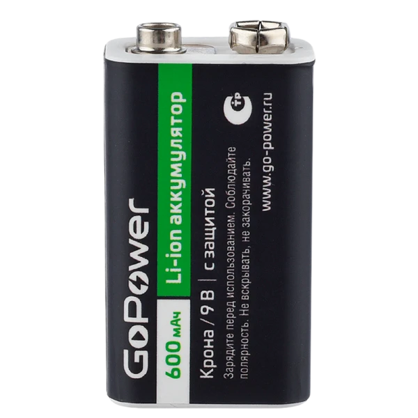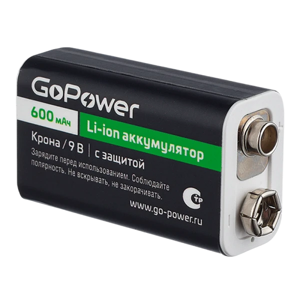 Аккумулятор бытовой GoPower Крона SH1 Li-ion 9V 600mAh (1/12/240)