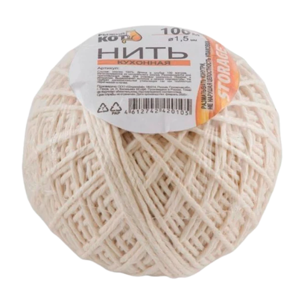 Нить кулинарная 100м в клубке предназначена для связывания продуктов, которые могут разваливаться в процессе приготовления.