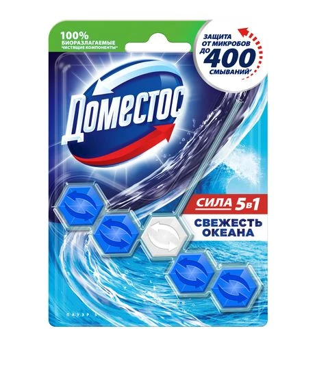 Доместос сила 5 в1 блок для унитаза свежесть океана защита от микробов и налета 55 гр