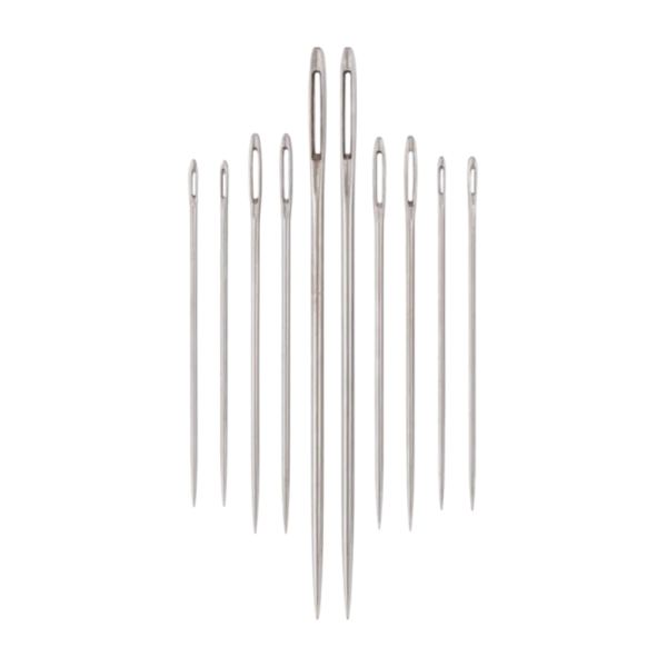 Иглы швейные ручные разных размеров, позволяют проложить строчку, сделать наметку, заштопать разорвавшийся шов, пришить пуговицу или кнопку, вышивать гладью и другими техниками. Конструкция каждой иглы тщательно продумана, чтобы стежки получались аккуратными. Благодаря тонкому и хорошо отшлифованному острию игла легко проходит через любые ткани, не повреждая структуру волокон.