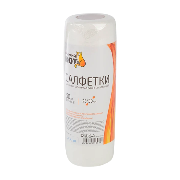 Салфетка Рыжий кот 25х30см 50шт. спанлейс с перфорацией в рулоне (1/12)