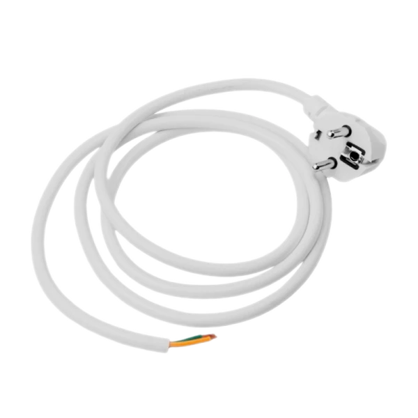 Сетевой кабель Volsten SR-LR2 ПВС3х1 белый длина 1,5 м с угловой евровилкой для подключения бытовых и осветительных приборов к электрической сети. Отличное решение при производстве источников света или в том случае, если старый провод от любимого торшера или настольной лампы пришел в негодность или порвался. Максимальная суммарная мощность подключенных устройств не должна превышать 3500 Вт. Комплектующие элементы изделия рассчитаны на безопасное использование при прохождении тока силой до 16А.
