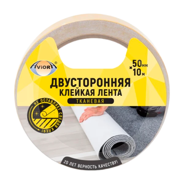 Клейкая лента Aviora 50мм*10м двусторонняя ткань каучук 200мкм.