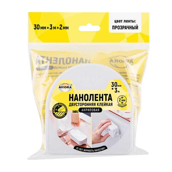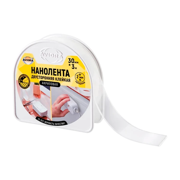 Клейкая лента Aviora 30мм*3м двусторонняя акрил 2мм НАНОЛЕНТА прозрачный (1/12)