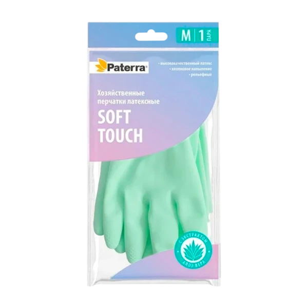 Перчатки для уборки хозяйственные Paterra M латексные – надежная защита рук от загрязнений, влаги и химически агрессивных веществ.