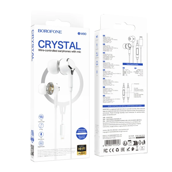 Наушники внутриканальные Borofone BM90 с микр. Lightning (m) белый (1/76/304)