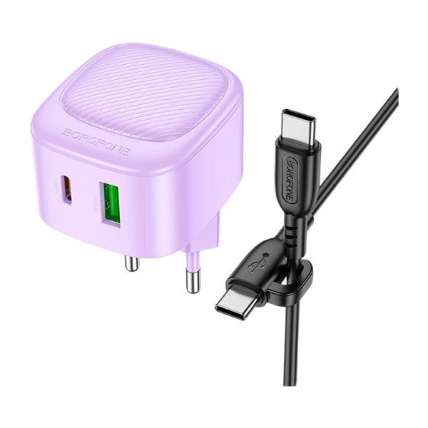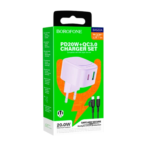 Сетевое З/У Borofone BAS22A 1USB/Type-C 3.0A 20W с кабелем Type-C/Type-C фиолетовый (1/36/144)