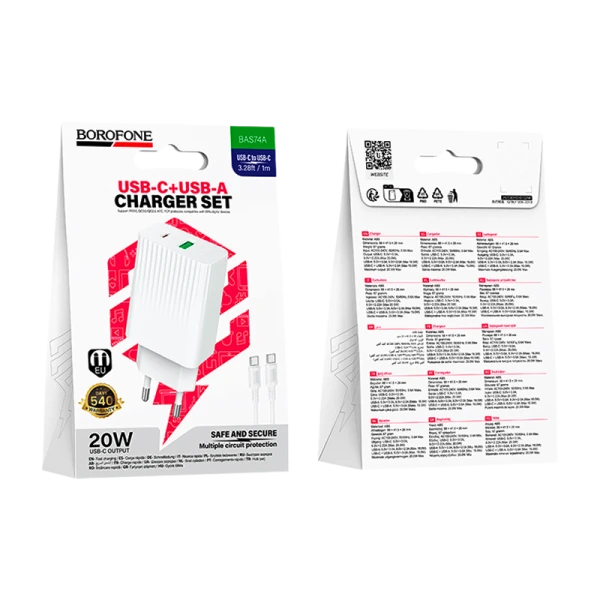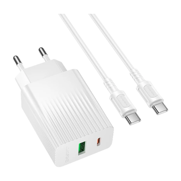 Сетевое З/У Borofone BAS74A 1USB+1Type-C 20W PD3.0 с кабелем Type-C/Type-C белый (1/20/120)
