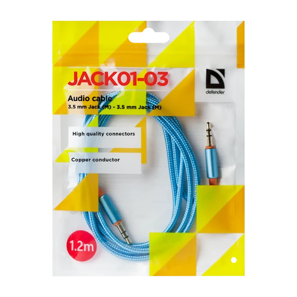 Аудио-кабель Defender JACK M - JACK M, 1.2м, тканевый синий.