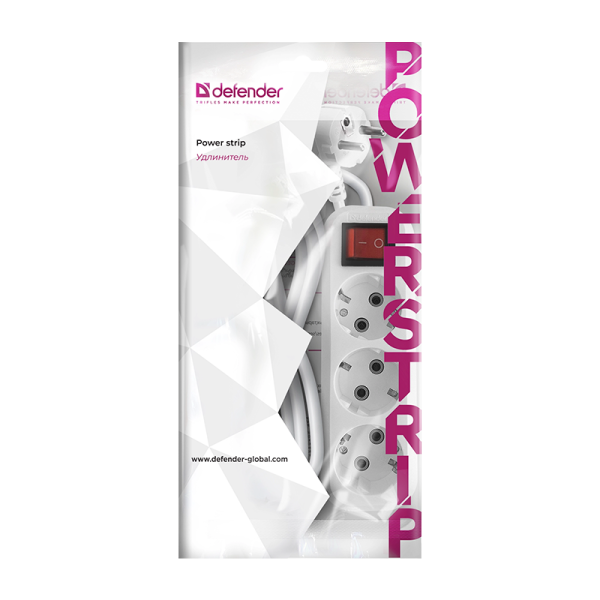 Удлинитель Defender L330 на 3 розетки с заземлением с выключателем предназначен для одновременного подключения нескольких электроприборов в местах, удаленных от стационарных розеток.