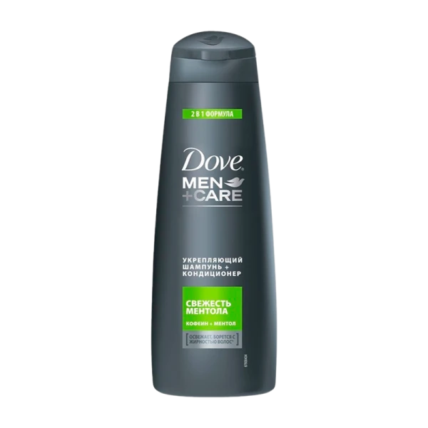 Укрепляющий шампунь-кондиционер Dove Men+Care Свежесть Ментола специально разработан для волос, склонных к жирности, для того, чтобы придать им здоровый вид, естественный блеск и свежесть. Шампунь-кондиционер Dove Men+Care содержит кофеин и ментол для ощущения свежести кожи головы надолго. Он укрепляет волосы, наполняет их энергией и борется с излишней жирностью.