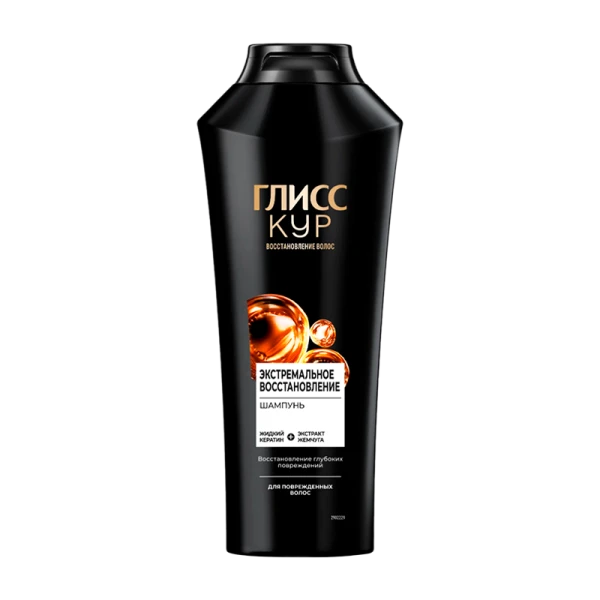 Средство содержит тройную концентрацию жидких кератинов, которые отвечают за глубокое восстановление волос. Активные компоненты проникают внутрь каждого волоска, заполняя поврежденные участки. Gliss Kur Экстремальное восстановление закрывает чешуйки и создает особый барьер, предупреждающий повторное разрушение волос. После его использования волосы становятся сияющими и шелковистыми, легко поддаются укладке. Шампунь эффективно устраняет ломкость и сечение кончиков, возвращает кудрям роскошный насыщенный блеск.